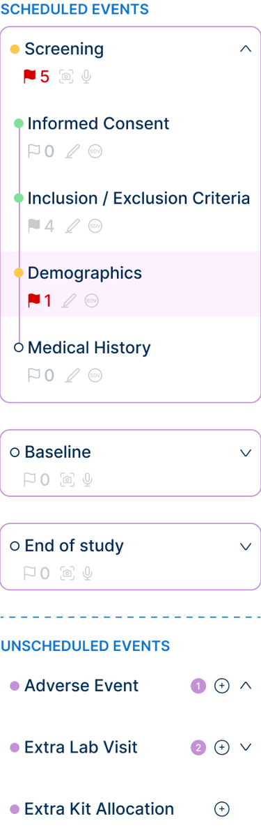 Information in clinical trials is dense, highly structured, and handled by multiple roles over long periods of time. This required designing interfaces that could be easily understood, revisited, and handed off between users without losing context.