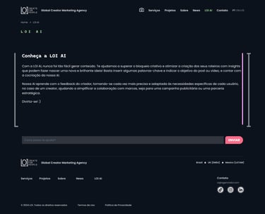 Bold Visual Storytelling: I used vibrant visuals, AI-generated images, and interactive elements to create an engaging experience that showcases LOI’s innovative services and high-profile collaborations. The AI-generated content helped enhance the site's creative appeal, aligning with LOI’s emphasis on technology-driven storytelling.