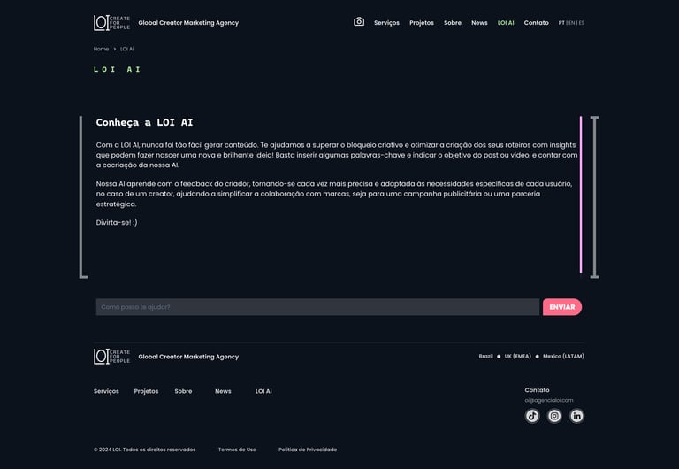 LOI is a global creator and influencer marketing agency that bridges the gap between brands and creators. The agency specializes in crafting innovative marketing campaigns, fostering authentic relationships between brands and diverse creators. LOI offers a range of services, including campaign management, content production, user-generated content (UGC), paid media, and live commerce. Their goal is to enhance brand visibility through long-term collaborations and always-on activation, with offices in Brazil, Mexico, and the UK.