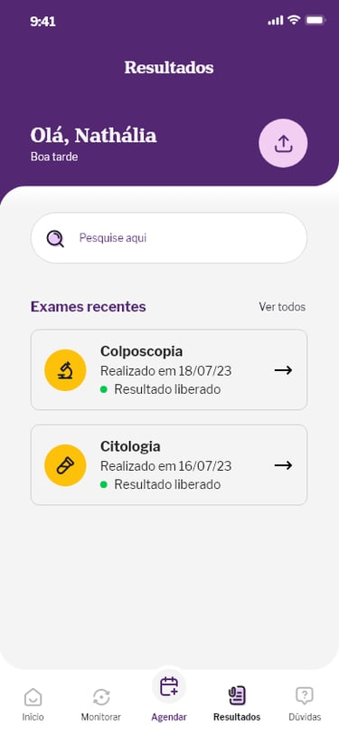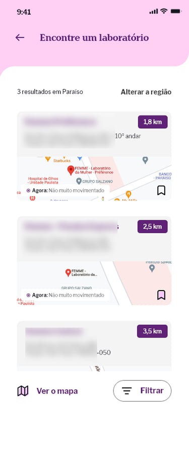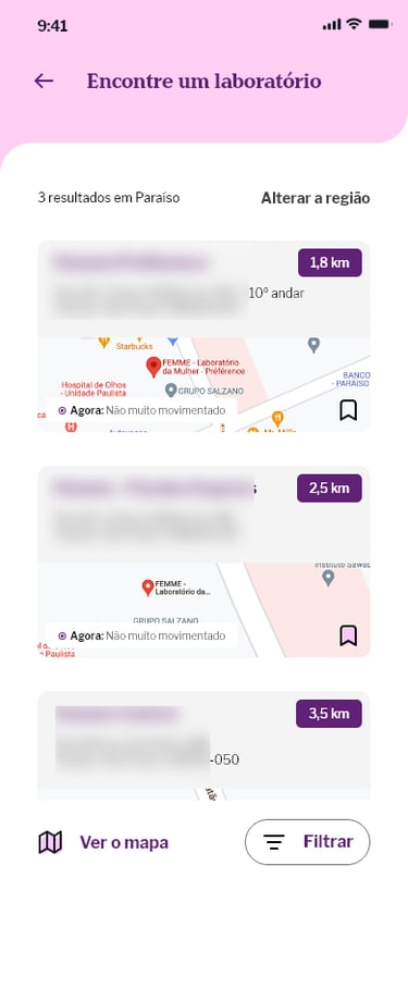 Montamos dois workshops: no primeiro, conversamos com funcionários responsáveis pelo sistema de agendamento e resultado de exames, incluindo liberação de pedidos com planos de saúde; no segundo, juntamos médicos e representantes comerciais para falarmos sobre a possibilidade de criação de um prontuário médico integrado ao app do paciente, viabilizando um processo simplificado de agendamento direto do consultório médico, e acesso direto e facilitado aos resultados de exames e histórico de saúde dos pacientes.
